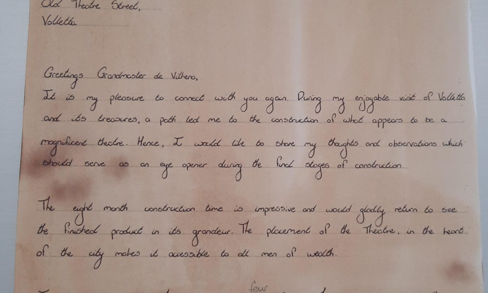 The students were asked to imagine that they are William Shakespeare and they have decided to write a formal letter to Grandmaster Manoel de Vilhena following their visit to the Manoel Theatre in Valletta, in order to congratulate him on his latest construction, whilst also providing additional suggestions or improvements he might be interested to take into consideration for his new theatre. This advice would definitely be deemed useful considering that Shakespeare built the Globe Theatre in London in both 1599 and 1614, together with the company of actors that Shakespeare formed part of – the Lord Chamberlain’s Men.